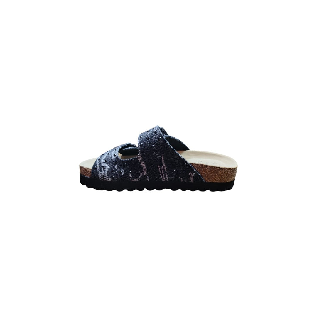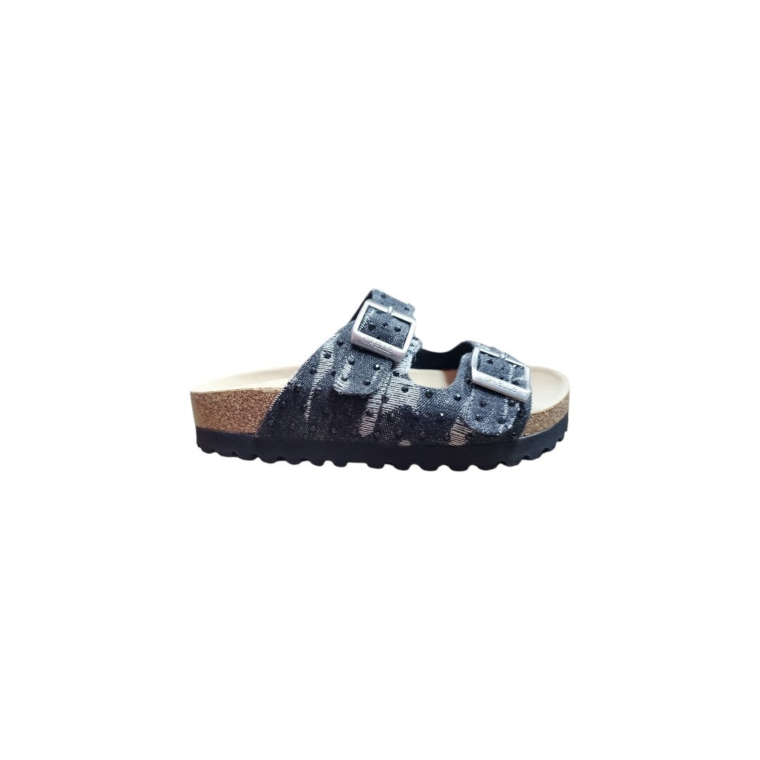 Sandalo Gaëlle Paris 2 fasce denim con strass