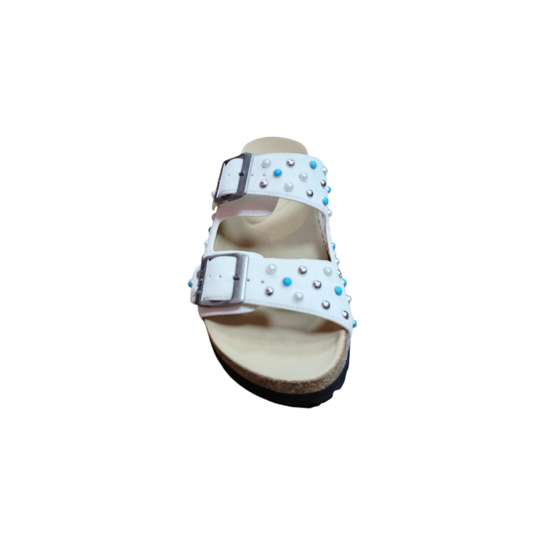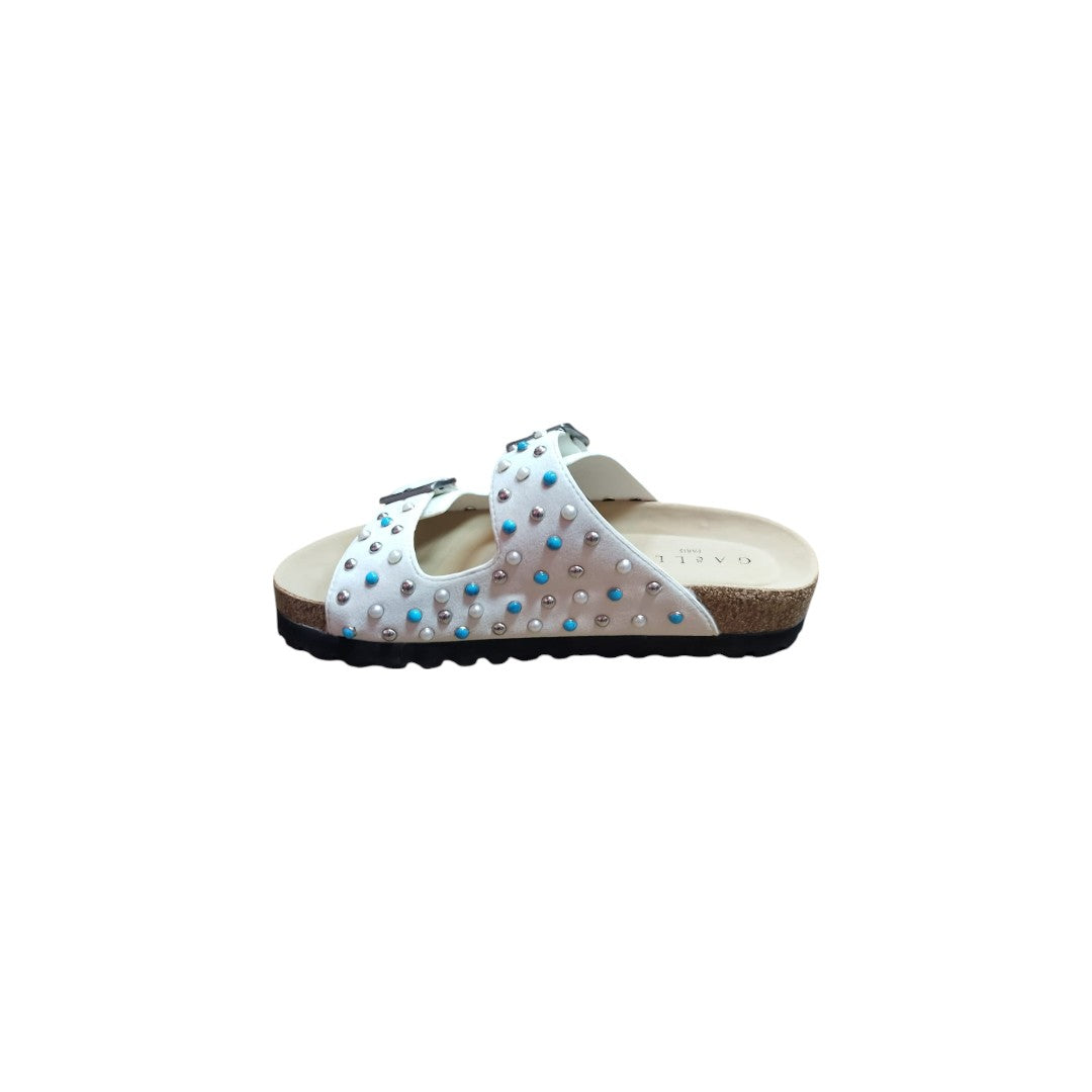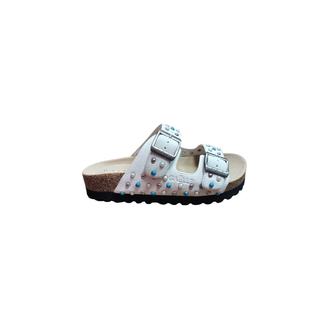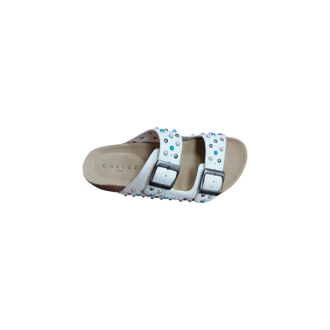 Sandalo Gaëlle Paris 2 fasce con borchie e turchesi • Bianco