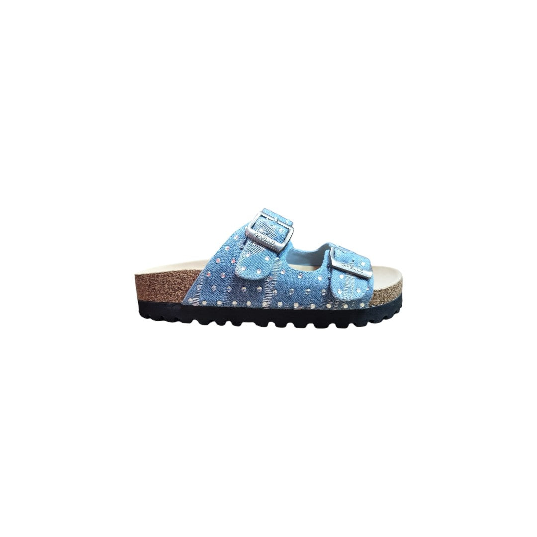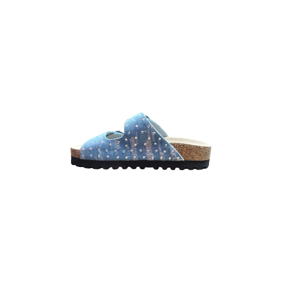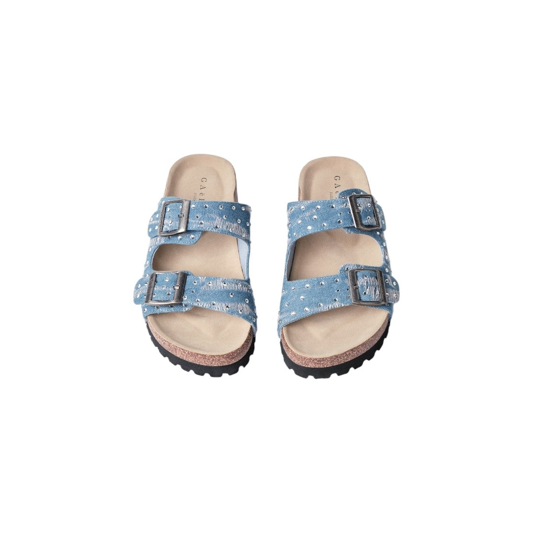Sandalo Gaëlle Paris 2 fasce in denim con strass