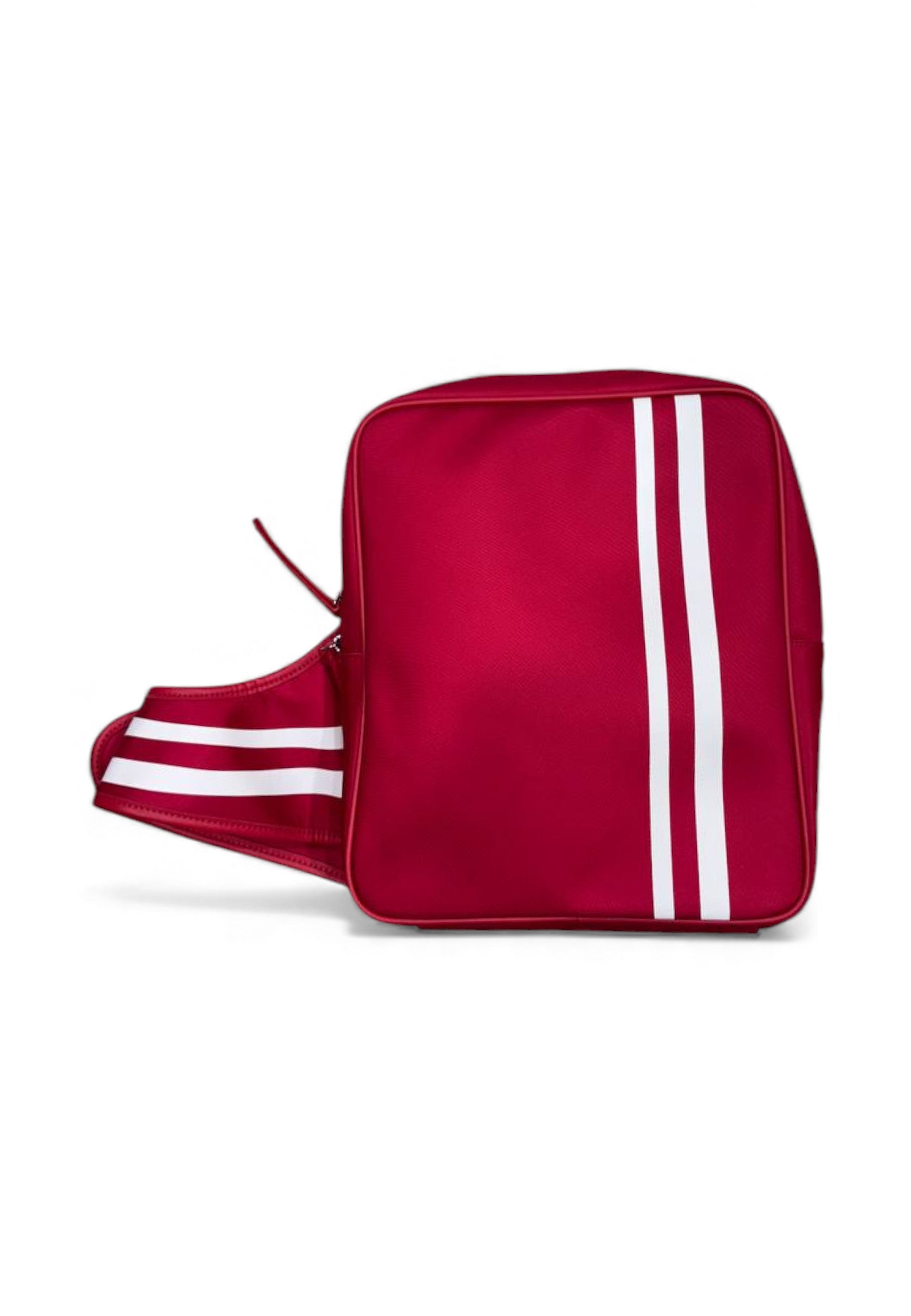 Borsa a tracolla GCDS. Rossa con strisce bianche. Logo sul manico. Lunghezza regolabile tramite nastro a strappo. Chiusura a zip nella parte superiore.