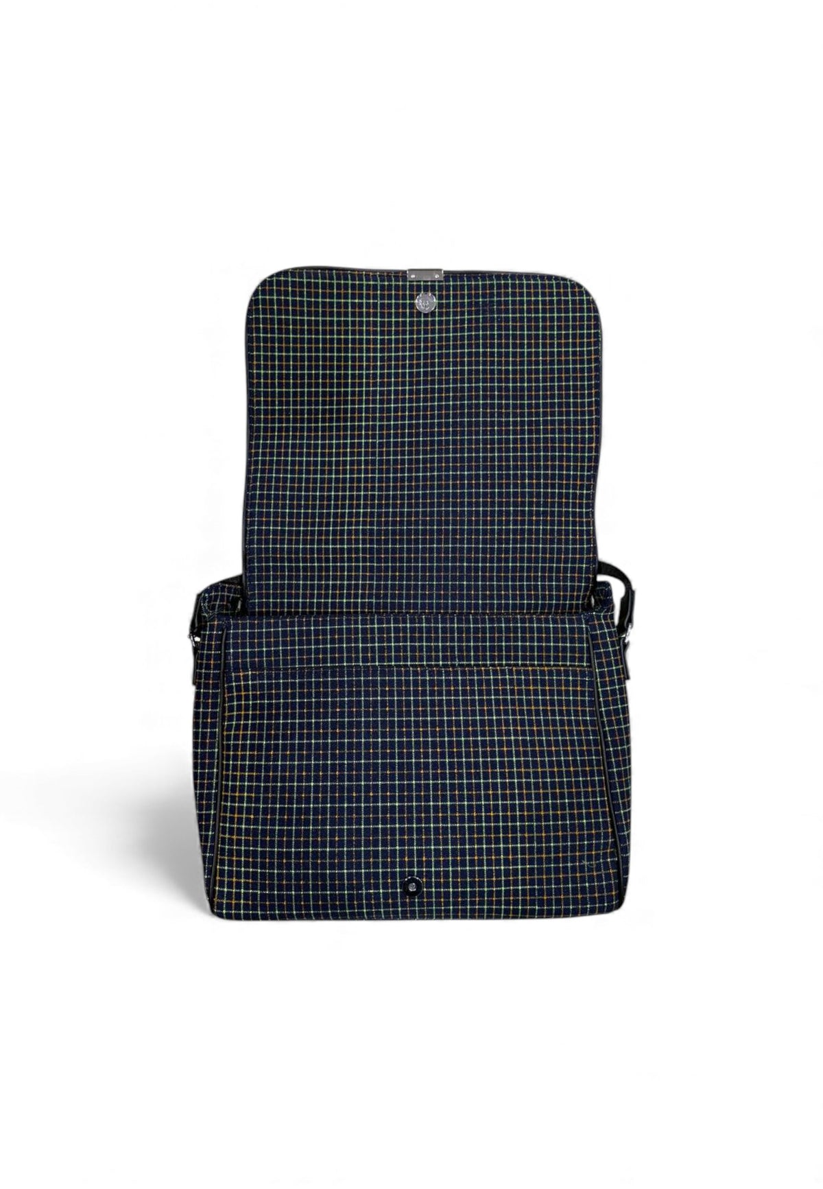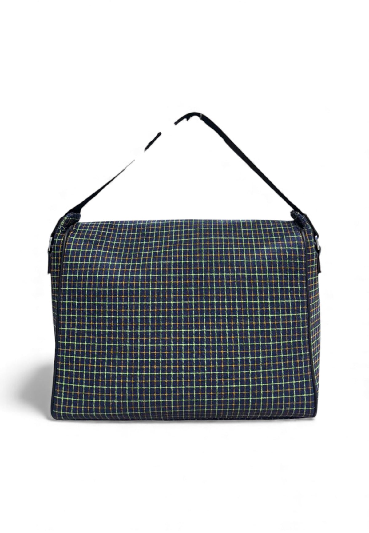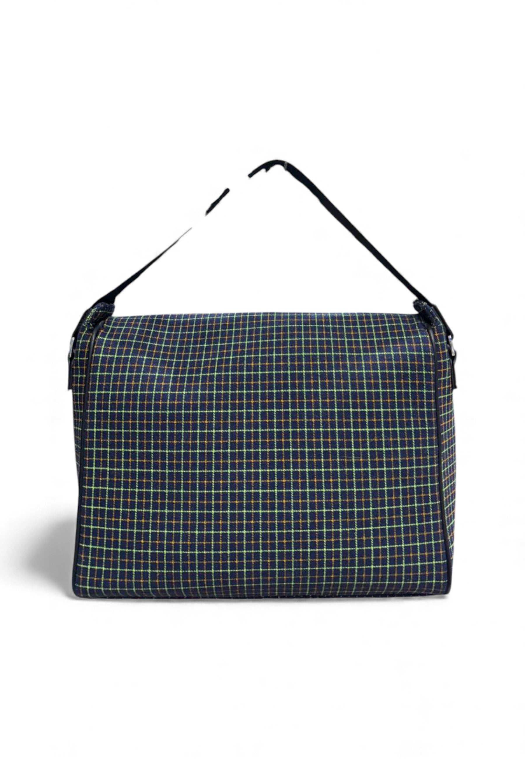 Borsa a tracolla GCDS con motivo a quadri. Applicazione del logo ricamato in rilievo color oro. Ha una tracolla regolabile nera.