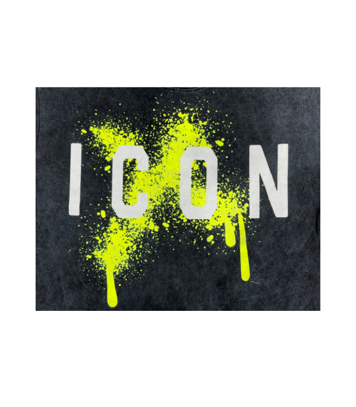 T-shirt Icon, con girocollo classico a maniche corte, ideale per un look casual. La maglietta è caratterizzata dalla scritta "icon" centrale, sovrastata da una "x" gialla a effetto spray.