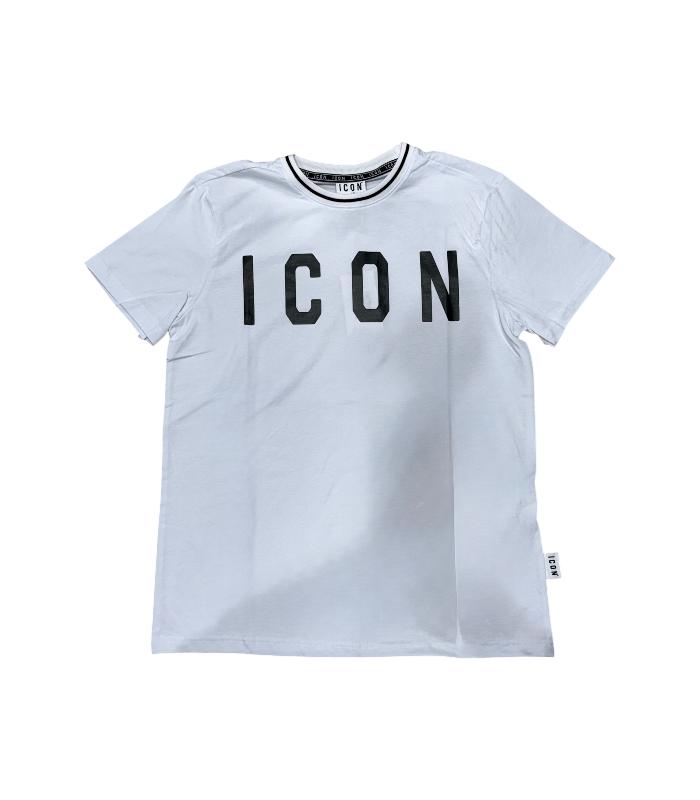 T-shirt Icon, con girocollo classico a maniche corte, ideale per un look casual. La maglietta è caratterizzata dalla scritta "icon" centrale.