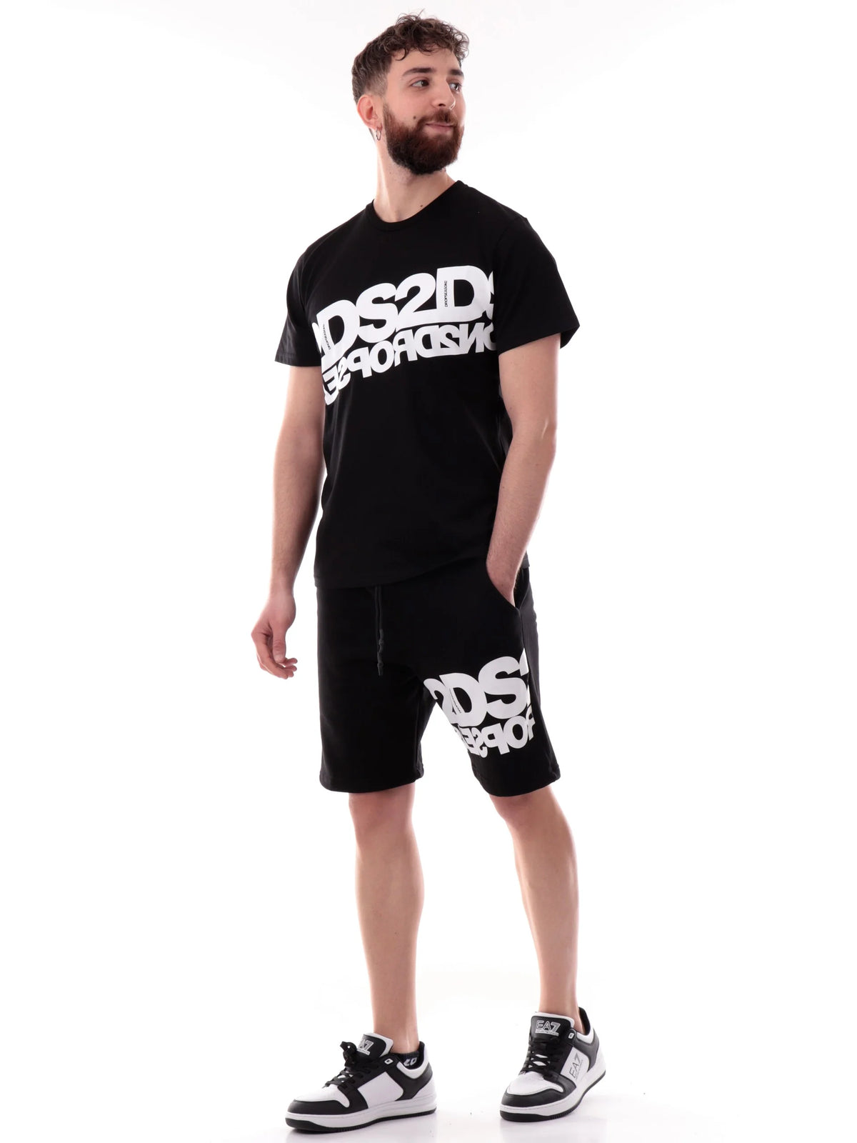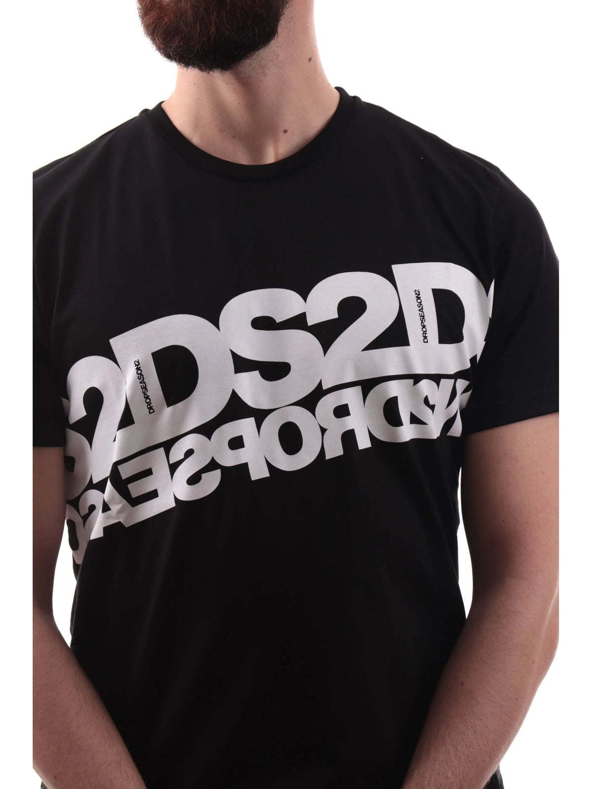 Maglia DS2 nera a manica corta da uomo maxi logo DS2 bianco, realizzata in 100% puro cotone.