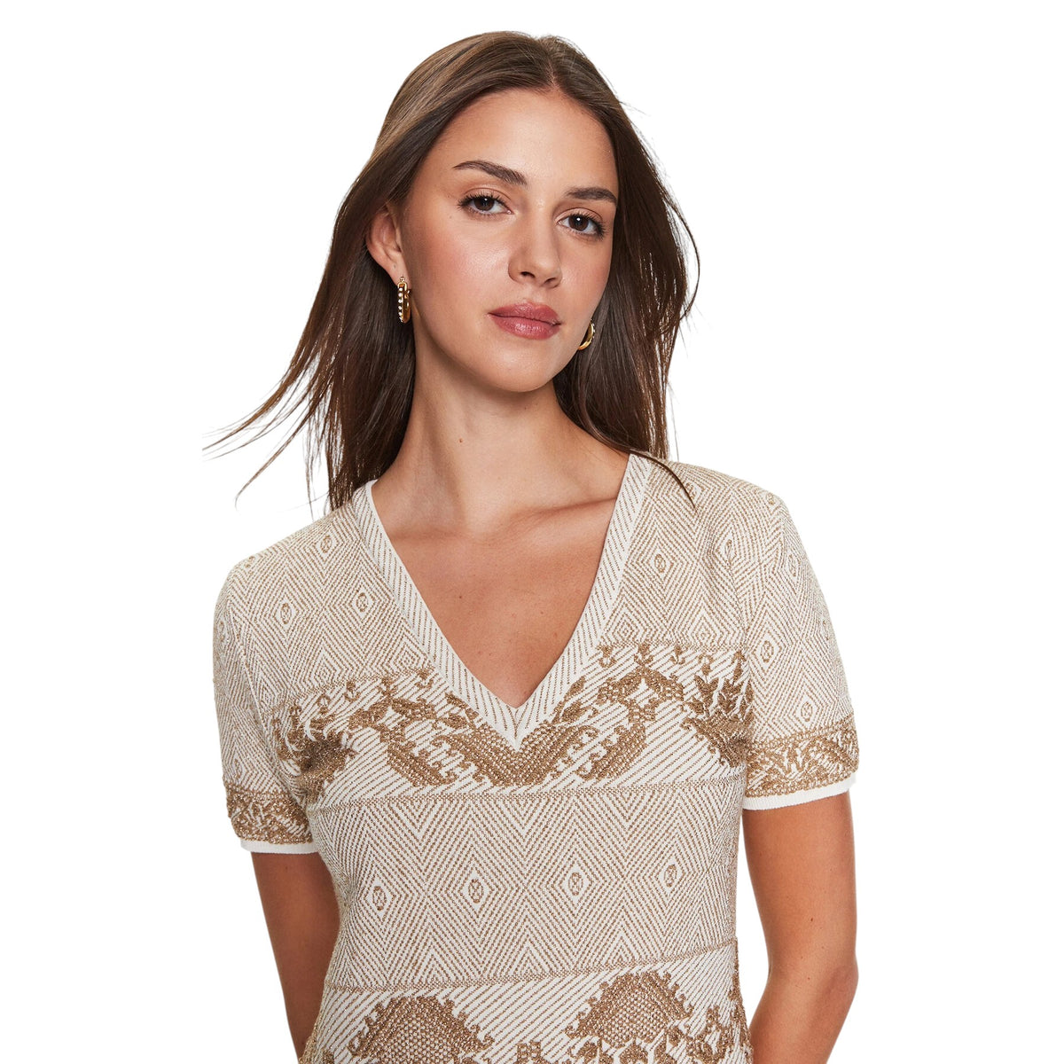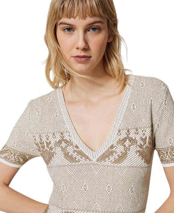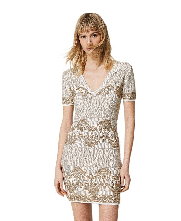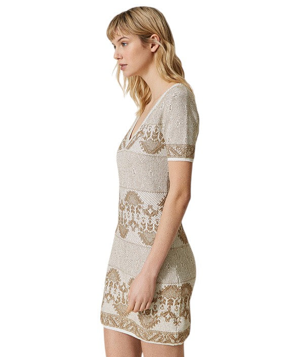 Abito corto con un motivo geometrico di una silhouette aderente.