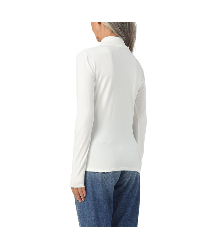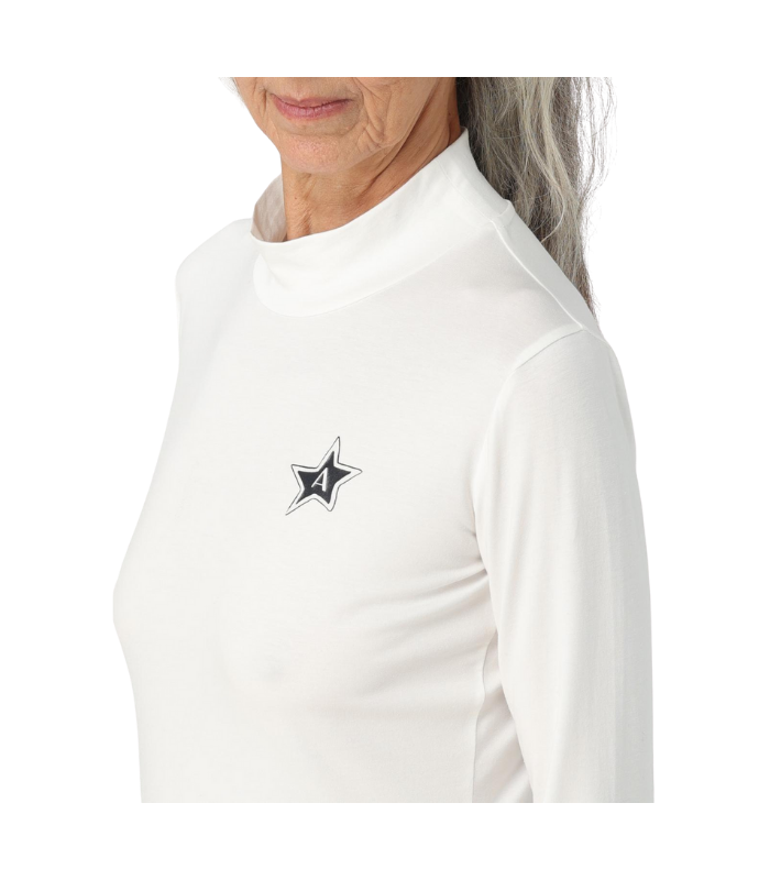 T-shirt damen, bianca classica a collo alto, con logo nella parte frontale.