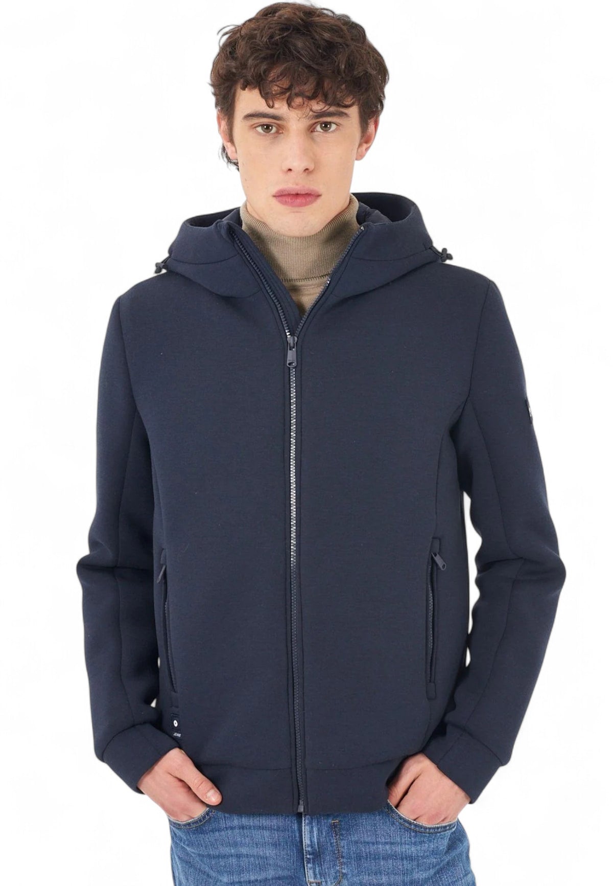 Scegli la raffinatezza del Blu Navy in questa giacca Yes Zee. Il colore profondo e la finitura opaca del tessuto tecnico si combinano per creare un capo che eleva qualsiasi outfit casual.