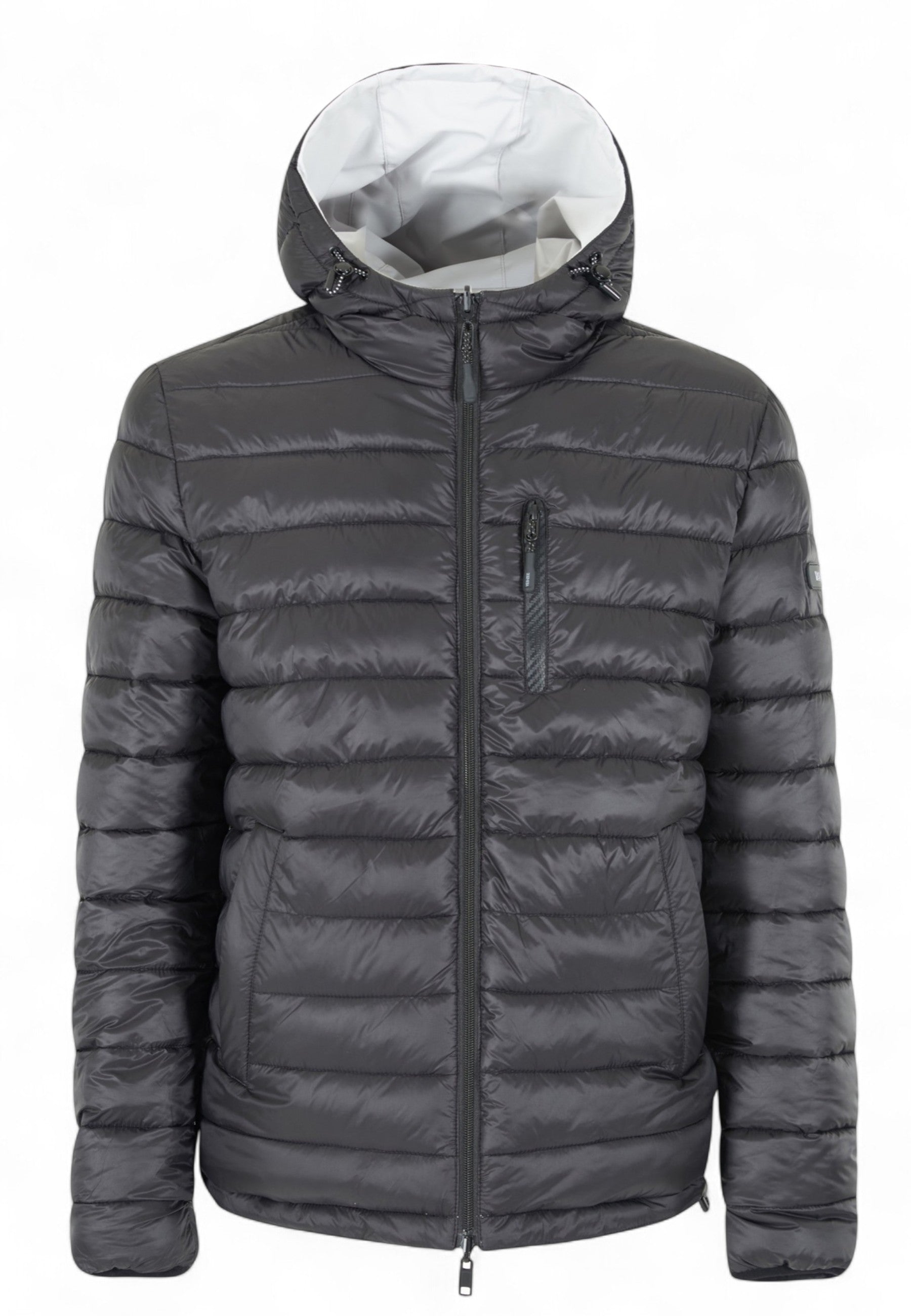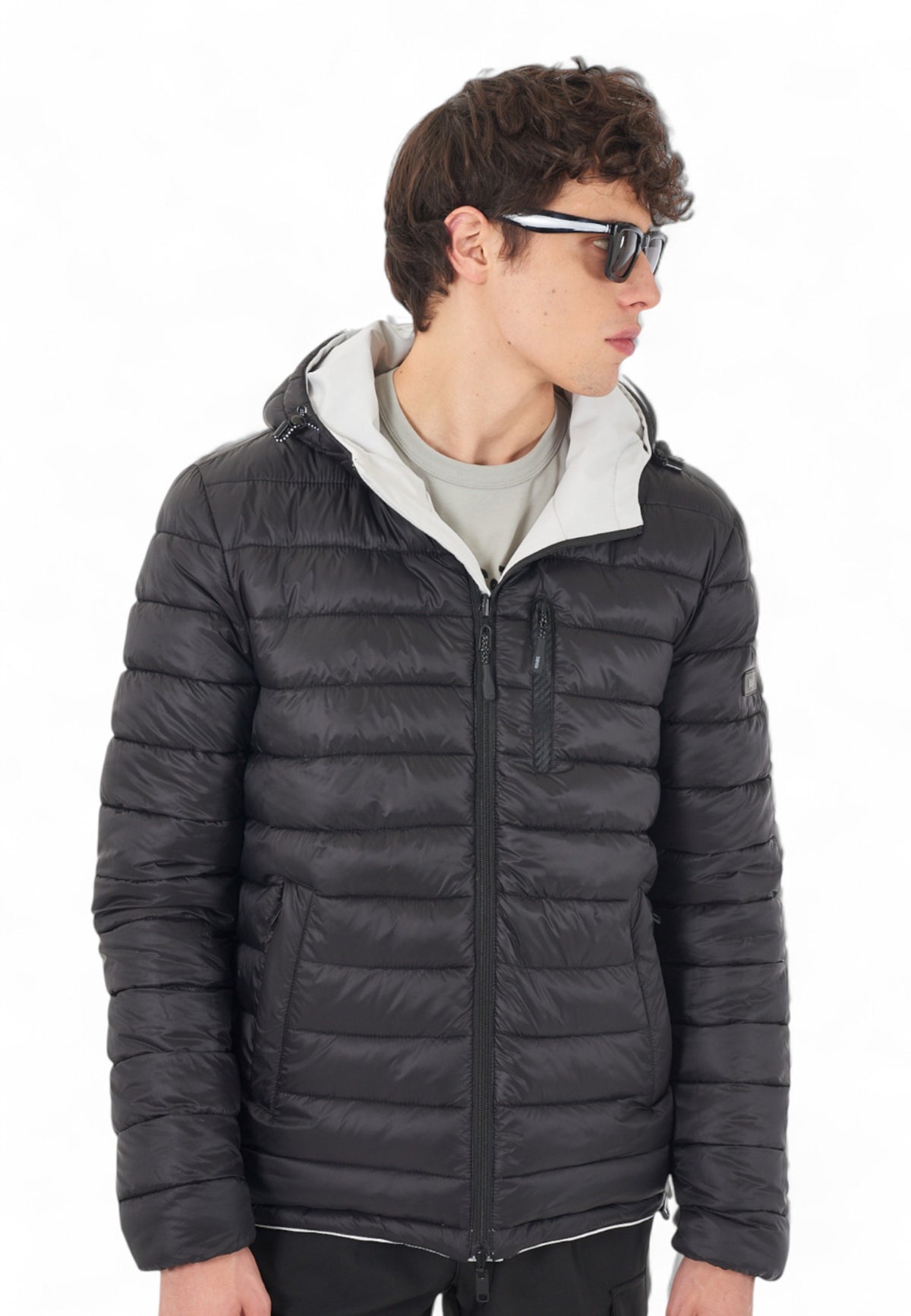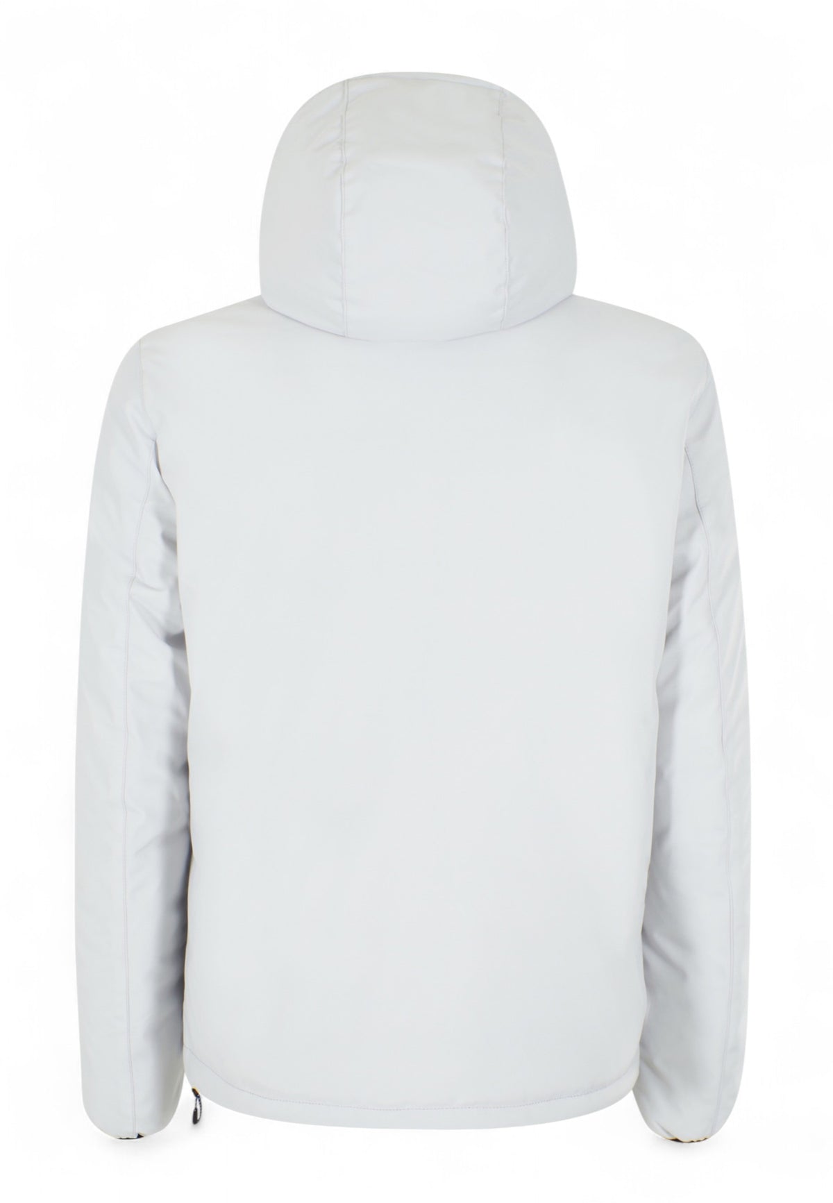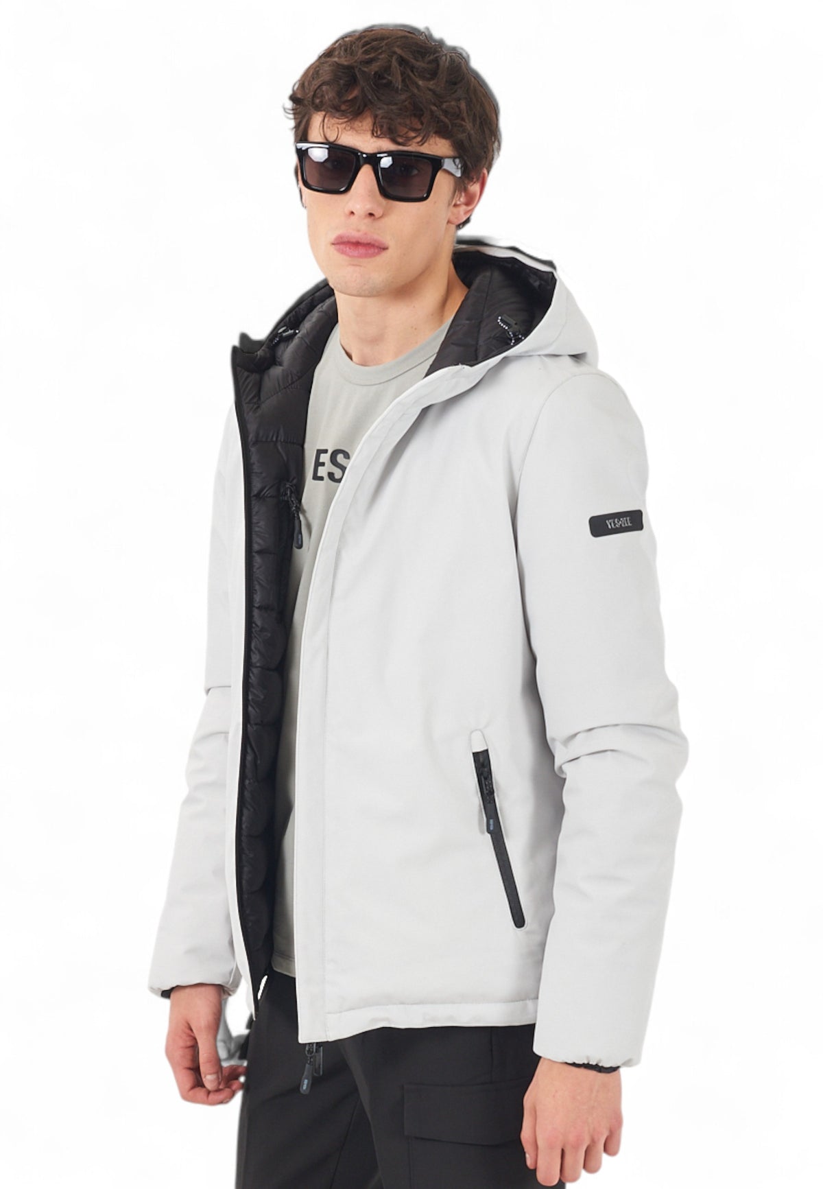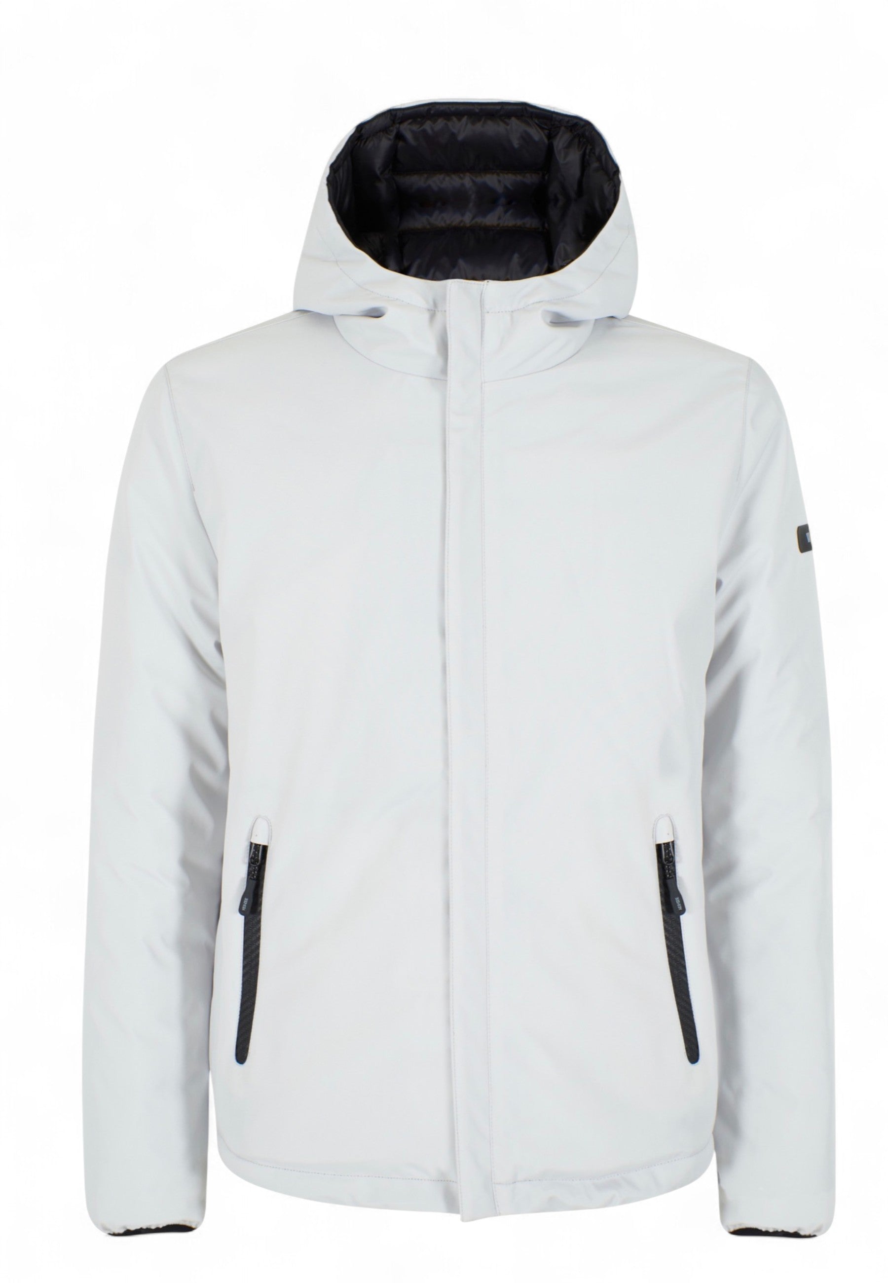 Da un lato, offre un look pulito e tecnico in un raffinato Grigio Chiaro/Ghiaccio (o Grigio Perla) in tessuto liscio e water-repellent, ideale per un outfit smart-casual. Dall'altro, rivela un'anima più sportiva con il lato trapuntato in Nero, che assicura un isolamento termico ottimale.