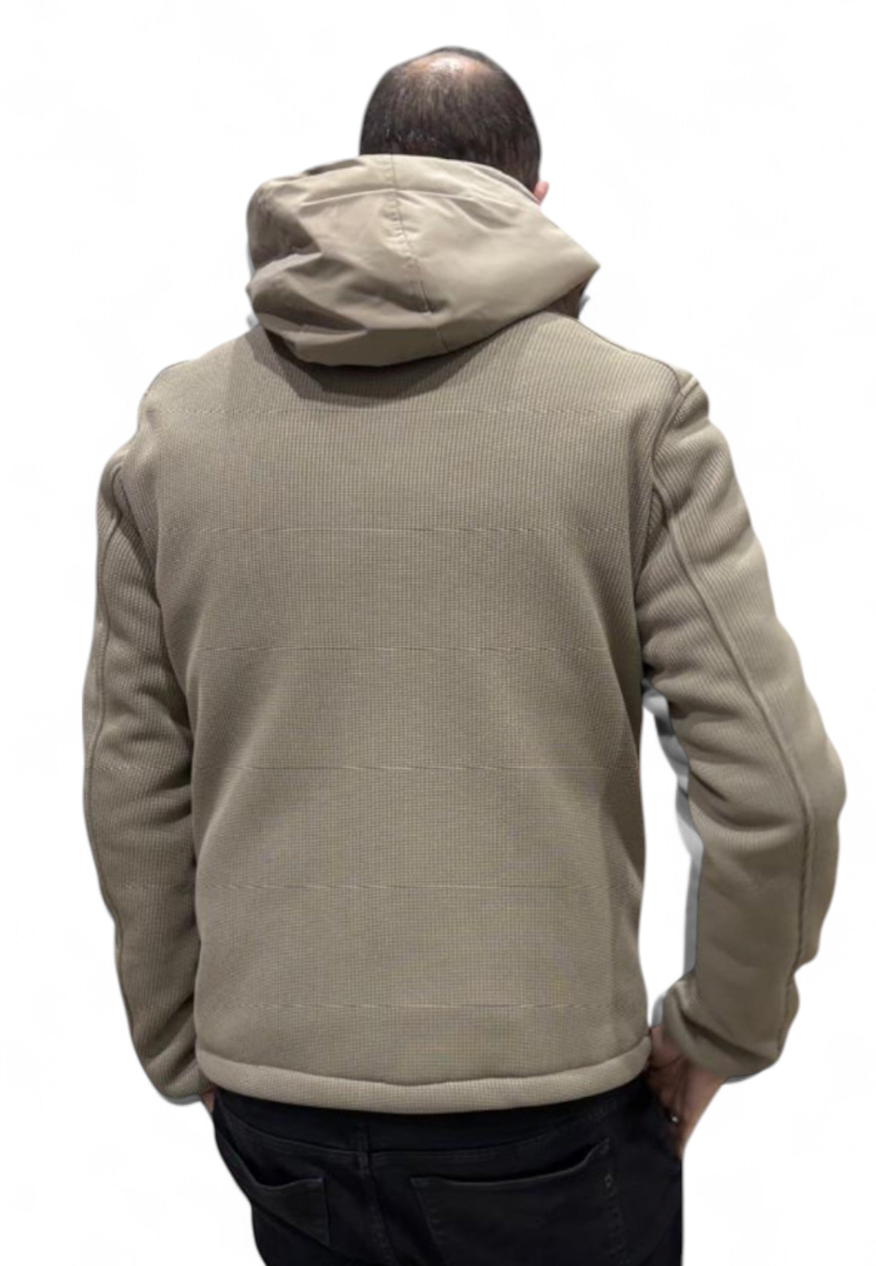 • Dettagli Funzionali: Cappuccio fisso alto per una maggiore protezione del collo, tasche laterali con zip.