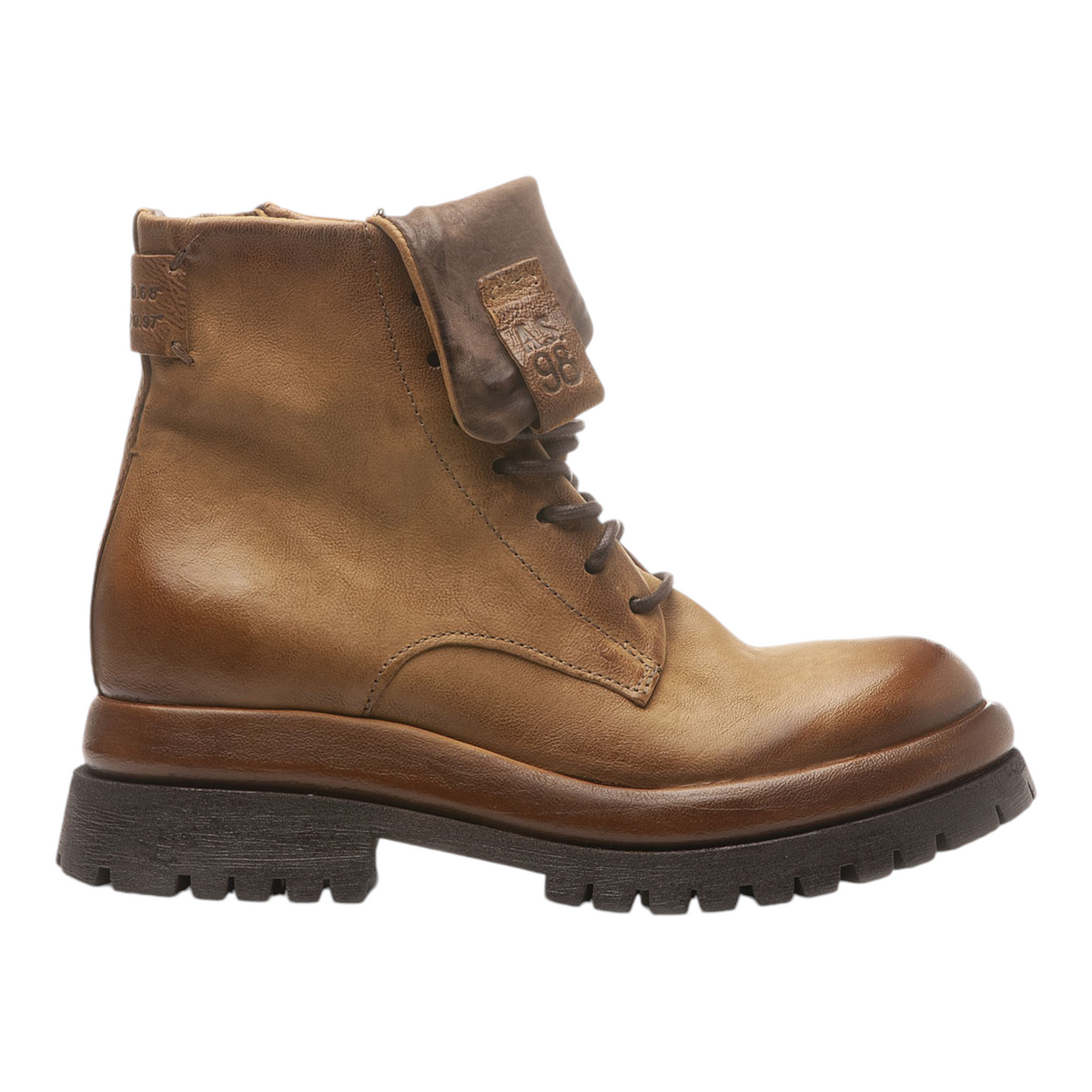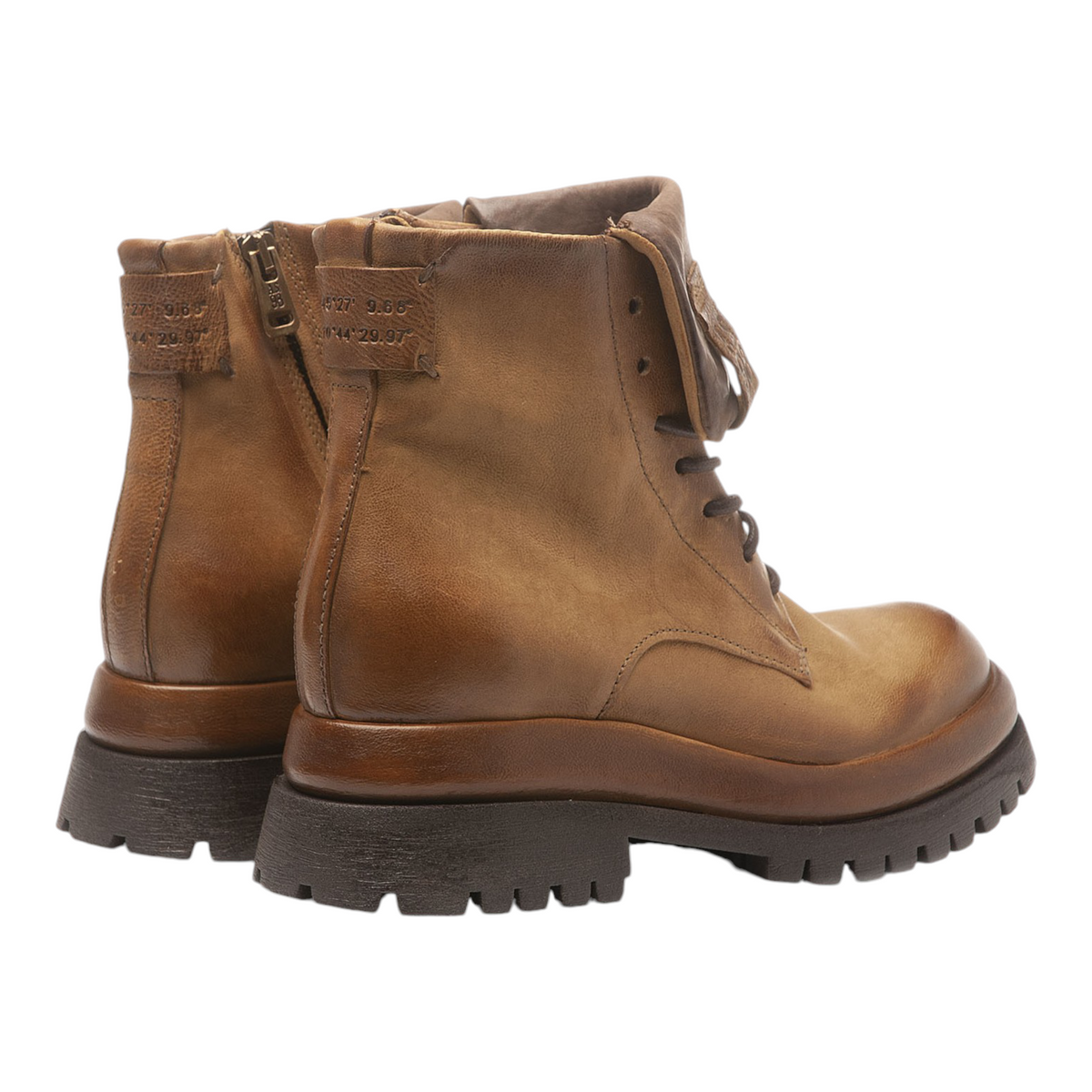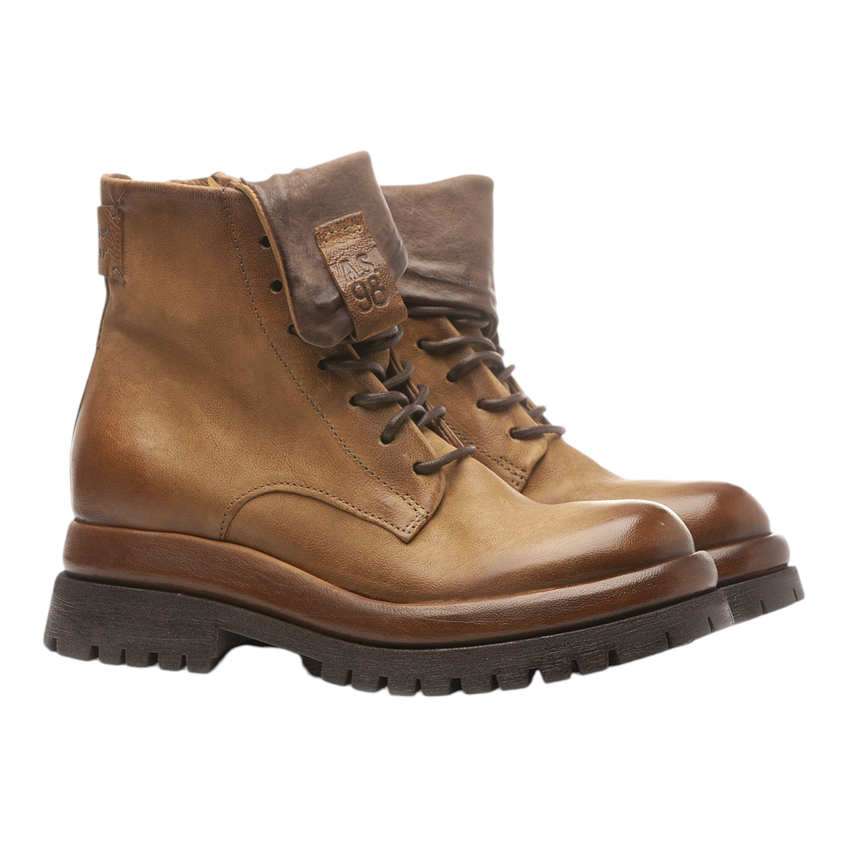 Stivaletti da donna A.S.98 realizzati in vera pelle, color marrone calvados/fondente, chiusura con cerniera zip sulla parte laterale e stringhe, suola in gomma ultra leggera. Ideali da indossare con ogni tipo di look e per ogni occasione, questo tipo di stivale è un icona del made in Italy. La linea di scarpe in pelle Vivent presentano una forma e un tacco per chi ama le altezze slanciate e femminili, che si coniugano su modelli asimmetrici particolari e dai dettagli ricercati.