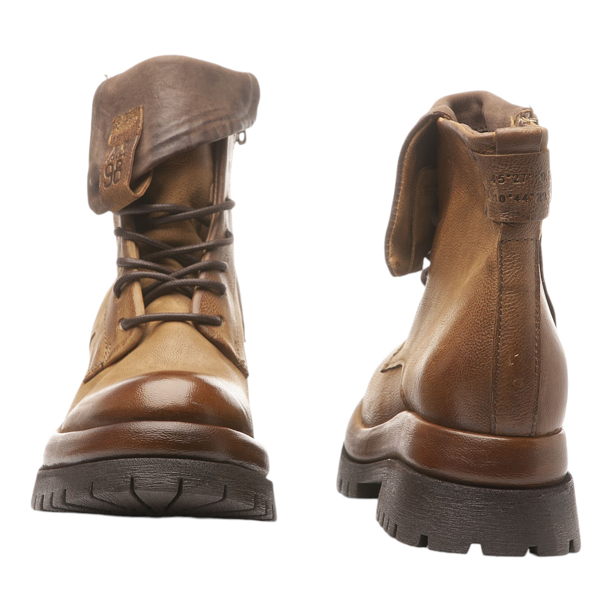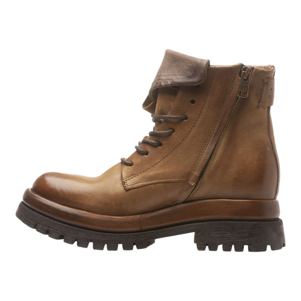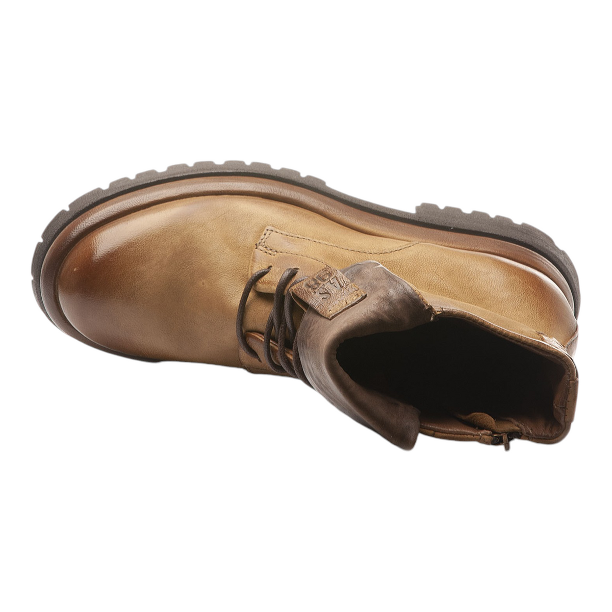Stivaletti da donna A.S.98 realizzati in vera pelle, color marrone calvados/fondente, chiusura con cerniera zip sulla parte laterale e stringhe, suola in gomma ultra leggera. Ideali da indossare con ogni tipo di look e per ogni occasione, questo tipo di stivale è un icona del made in Italy. La linea di scarpe in pelle Vivent presentano una forma e un tacco per chi ama le altezze slanciate e femminili, che si coniugano su modelli asimmetrici particolari e dai dettagli ricercati.