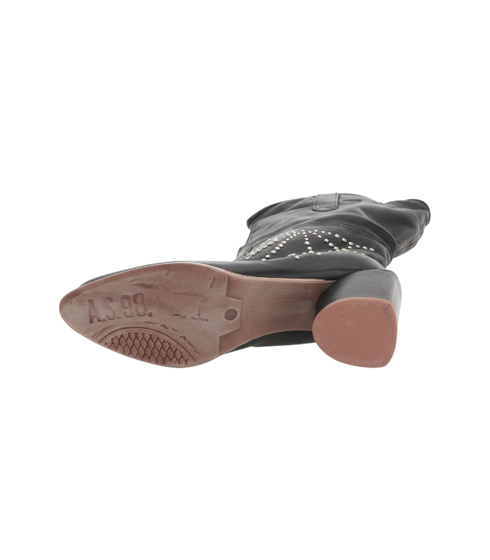 Stivali A.S.98, completamente realizzati in vera pelle color nero, suola in gomma ultraleggera, chiusura slip on, ideali per chi ama la comodità. La pelle in cui sono realizzati permettono di avere sempre il piede asciutto e con il giusto confort termico. Prodotto made in Italy.
