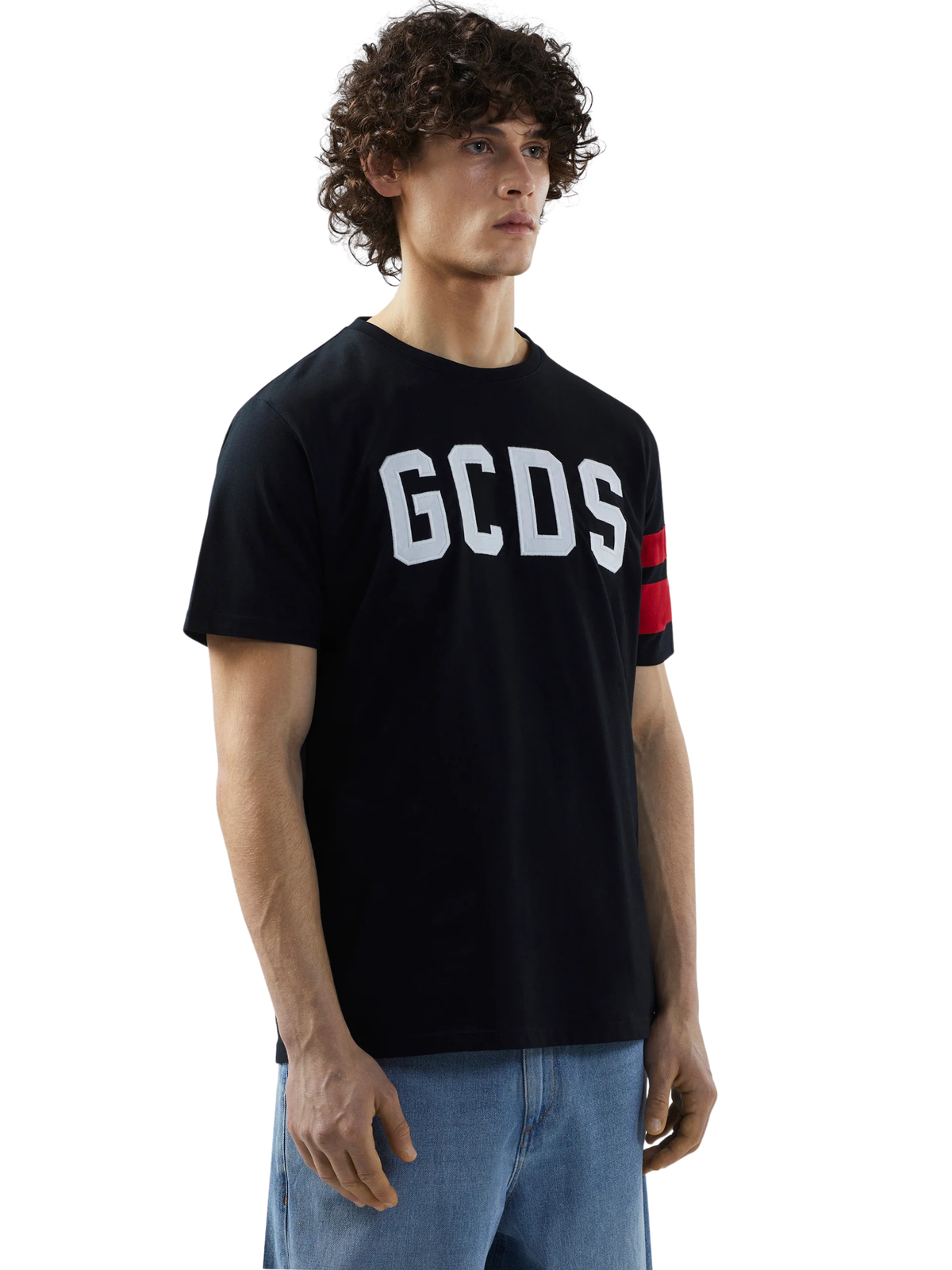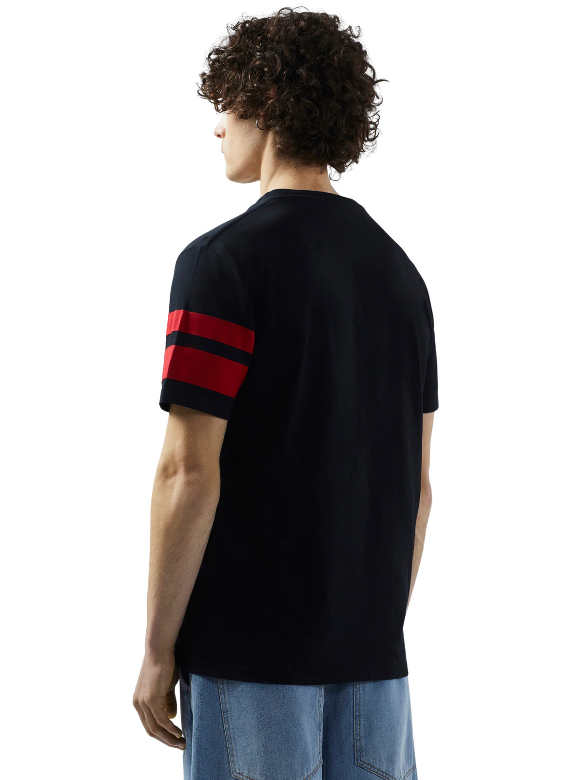 T-shirt con logo ricamato con cordonetto sul davanti e banda rossa in gros grain sulla manica sinistra