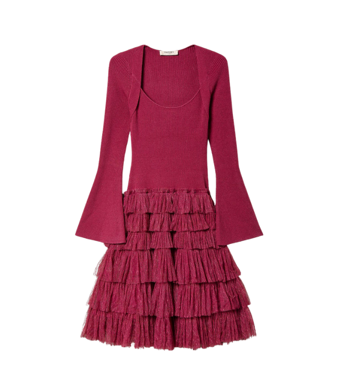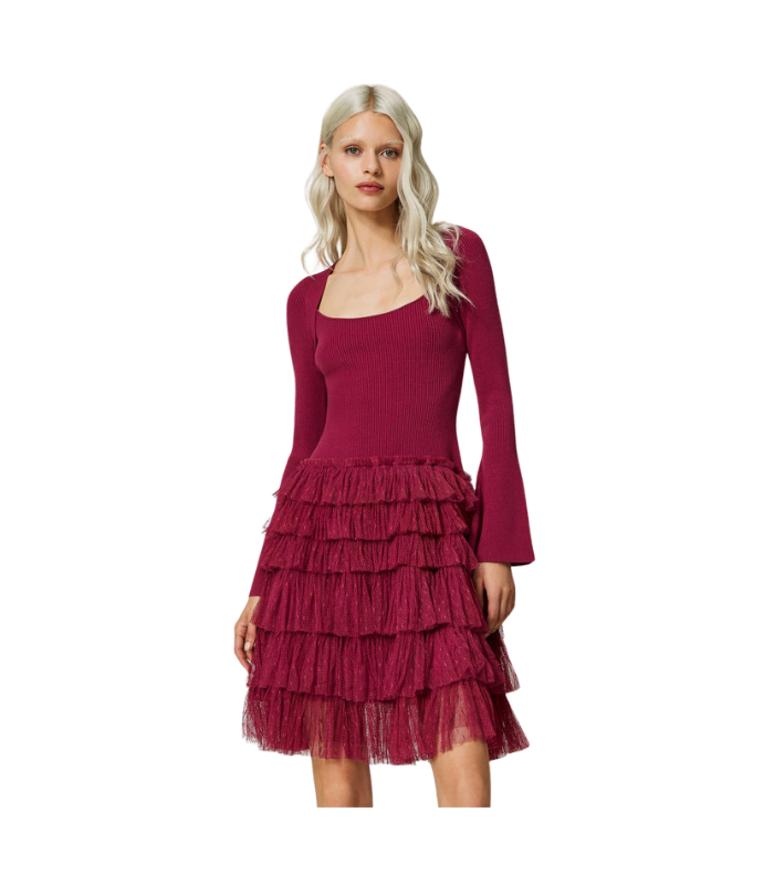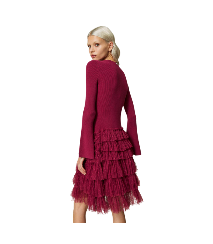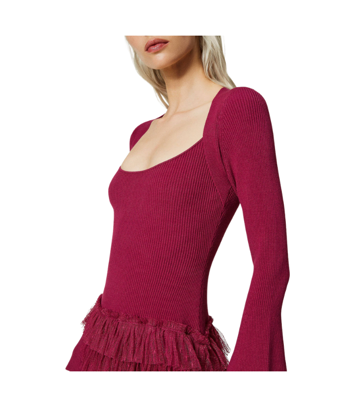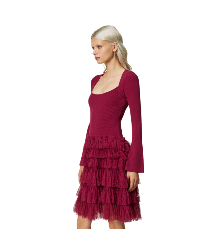 Abito corto in maglia con balze in tulle Twinset