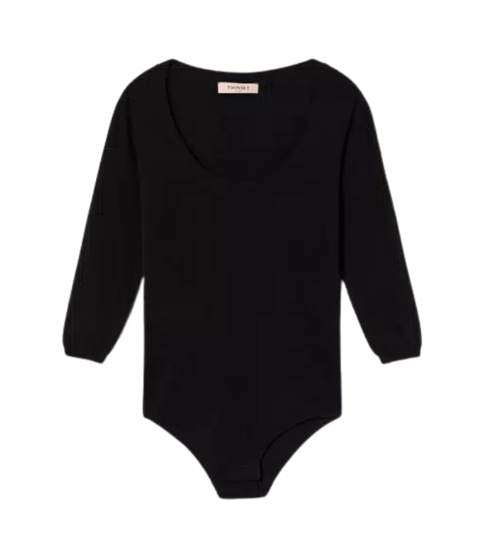 Base perfetta per una moltitudine di look. Scegli il body made in Italy in maglia di viscosa stretch seamless con ampio scollo, maniche a tre quarti, profili rifiniti a costine, placchetta logo Oval T con strass sul retro. Sarà perfetto con pantaloni e gonne a vita alta.