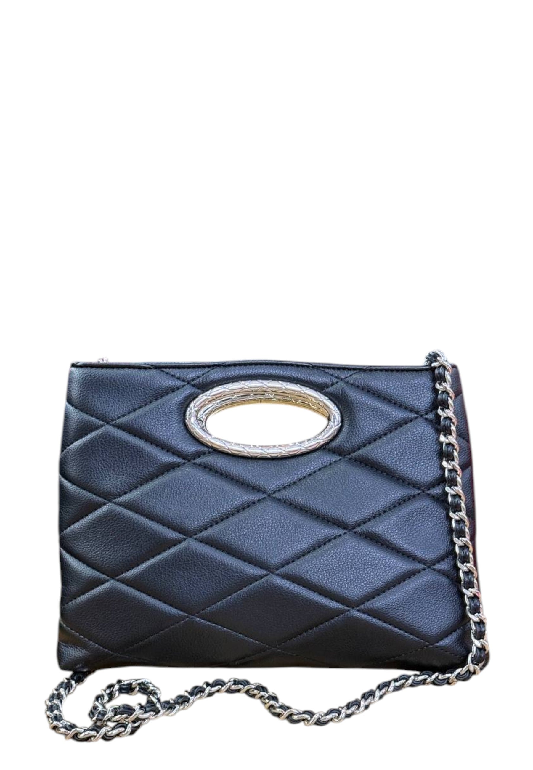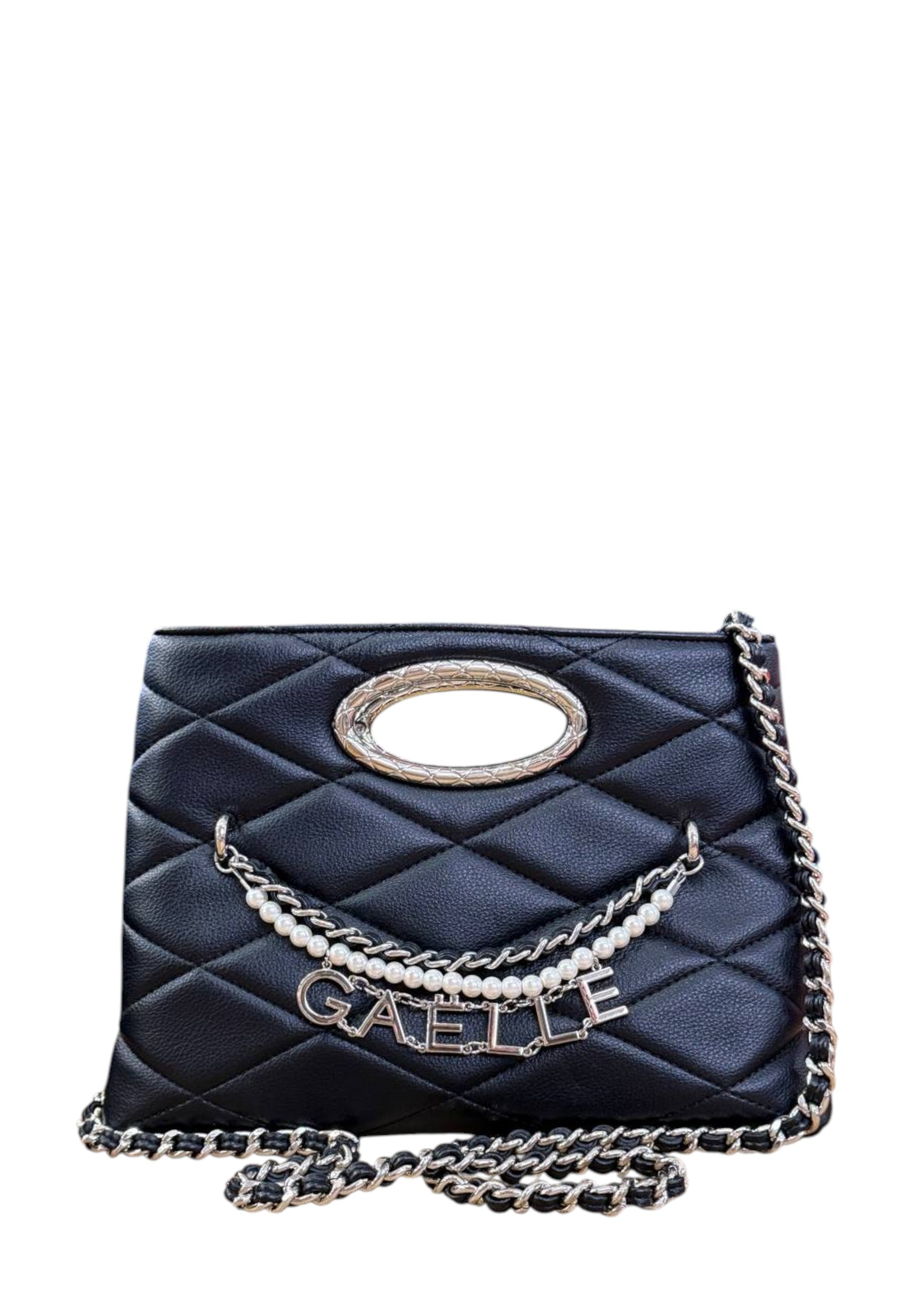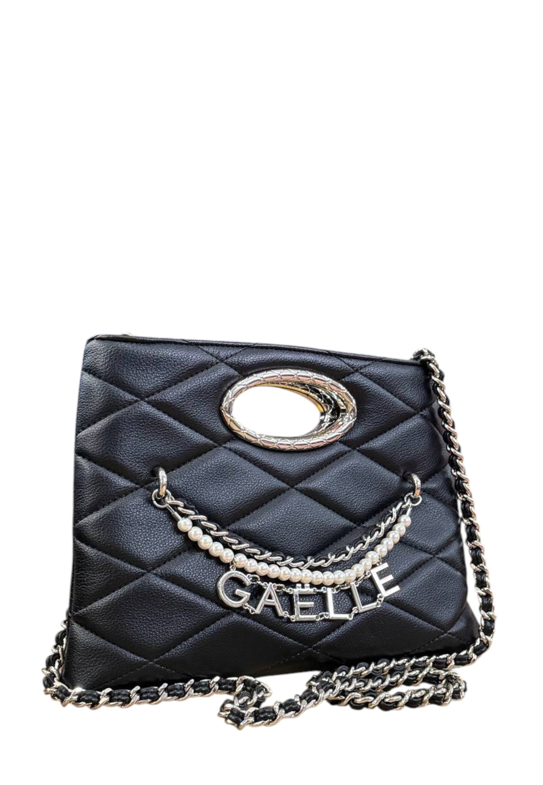 Borsa firmata Gaëlle Paris in ecopelle con chiusura magna, manico integrato nella borsa, tracolla, scomparto interno, due tasche interne tra cui una con chiusura a zip e logo a charm.