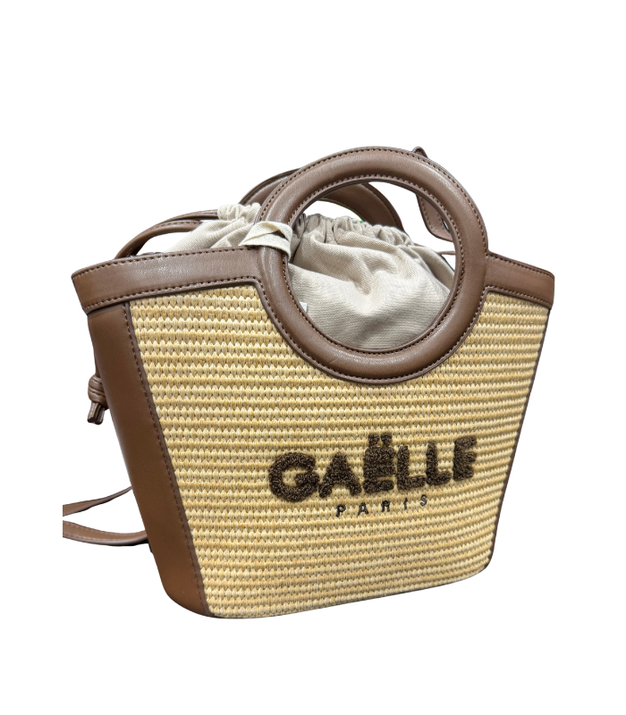 Borsa Gaëlle Paris, a mano con tracolla regolabile e rimovibile sui toni del beige e marrone.