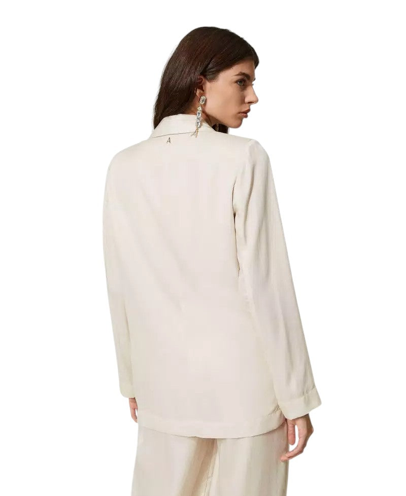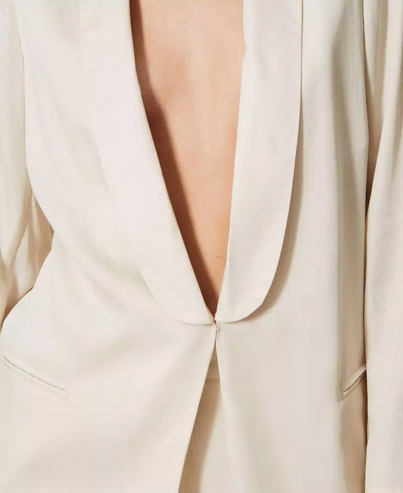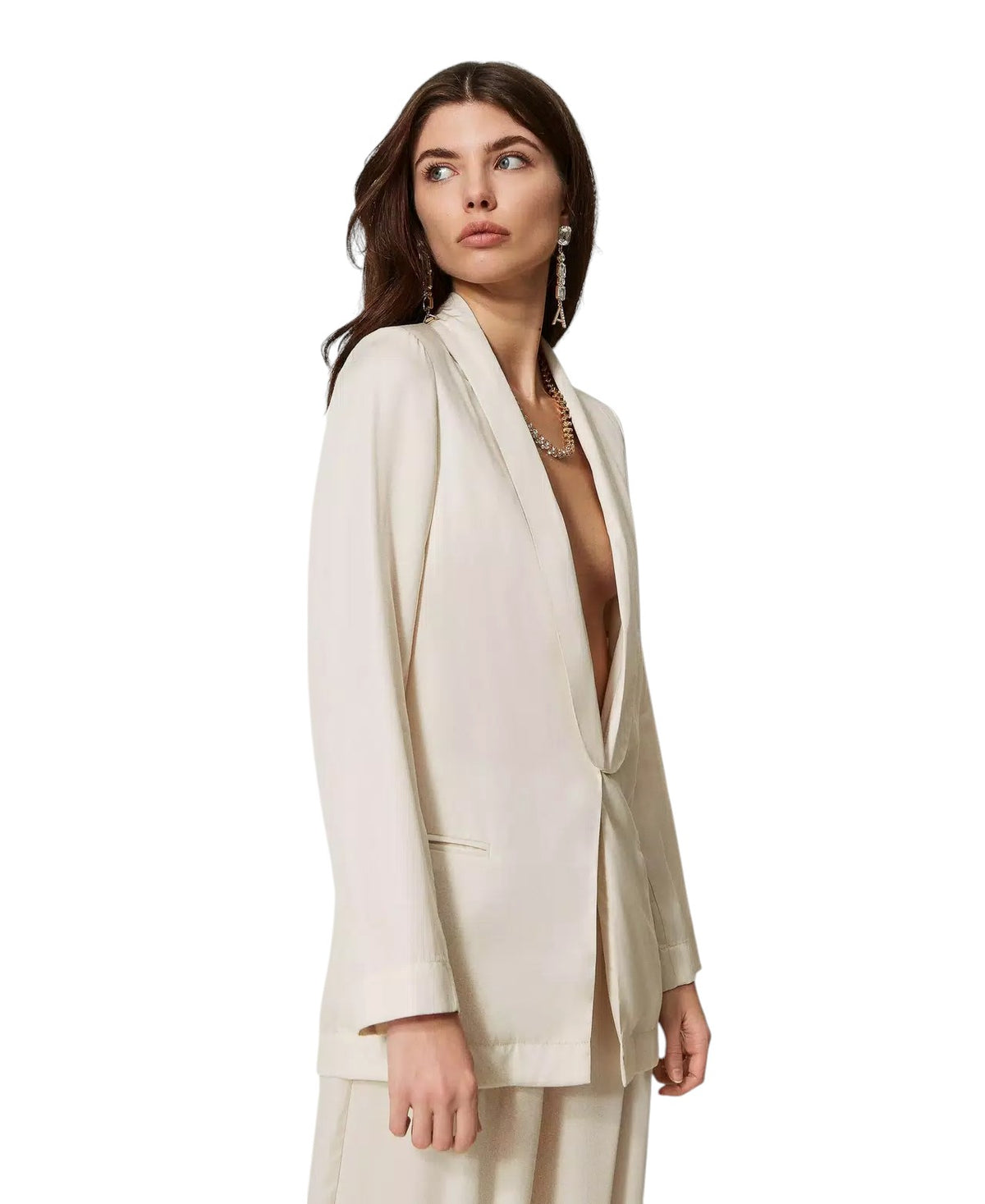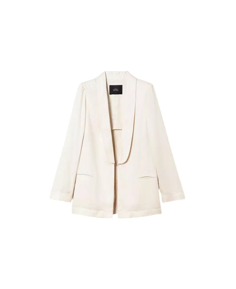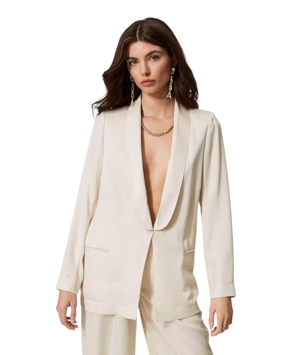 Giacca blazer in TENCEL(TM) tinto fluido con linea dritta, revers sciallato, chiusura con gancetto, tasche a filetto, foderato.
