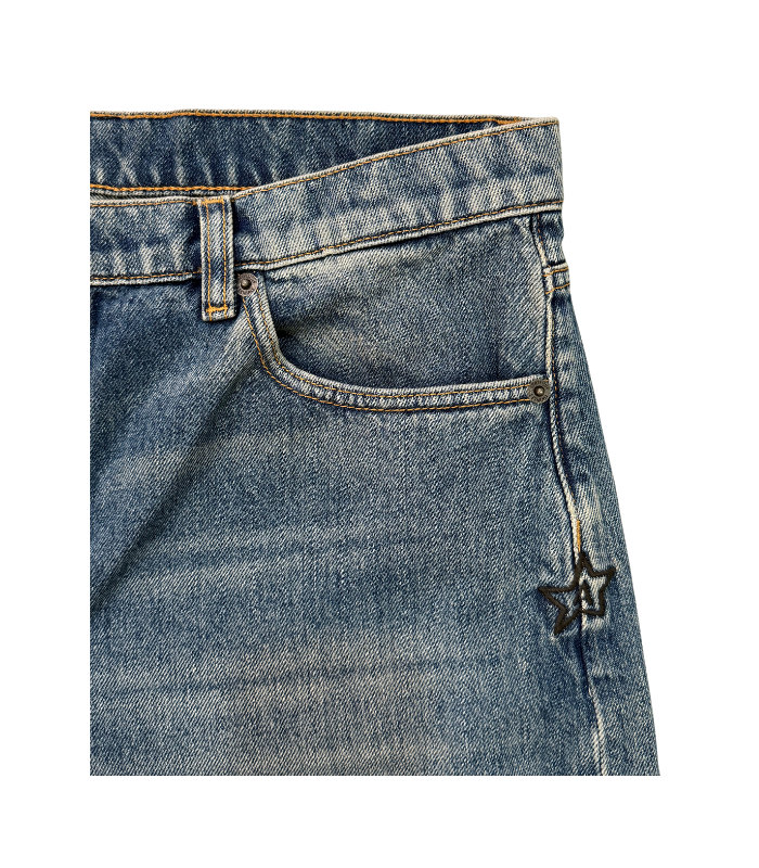 Jeans boyfriend in denim a gamba larga.