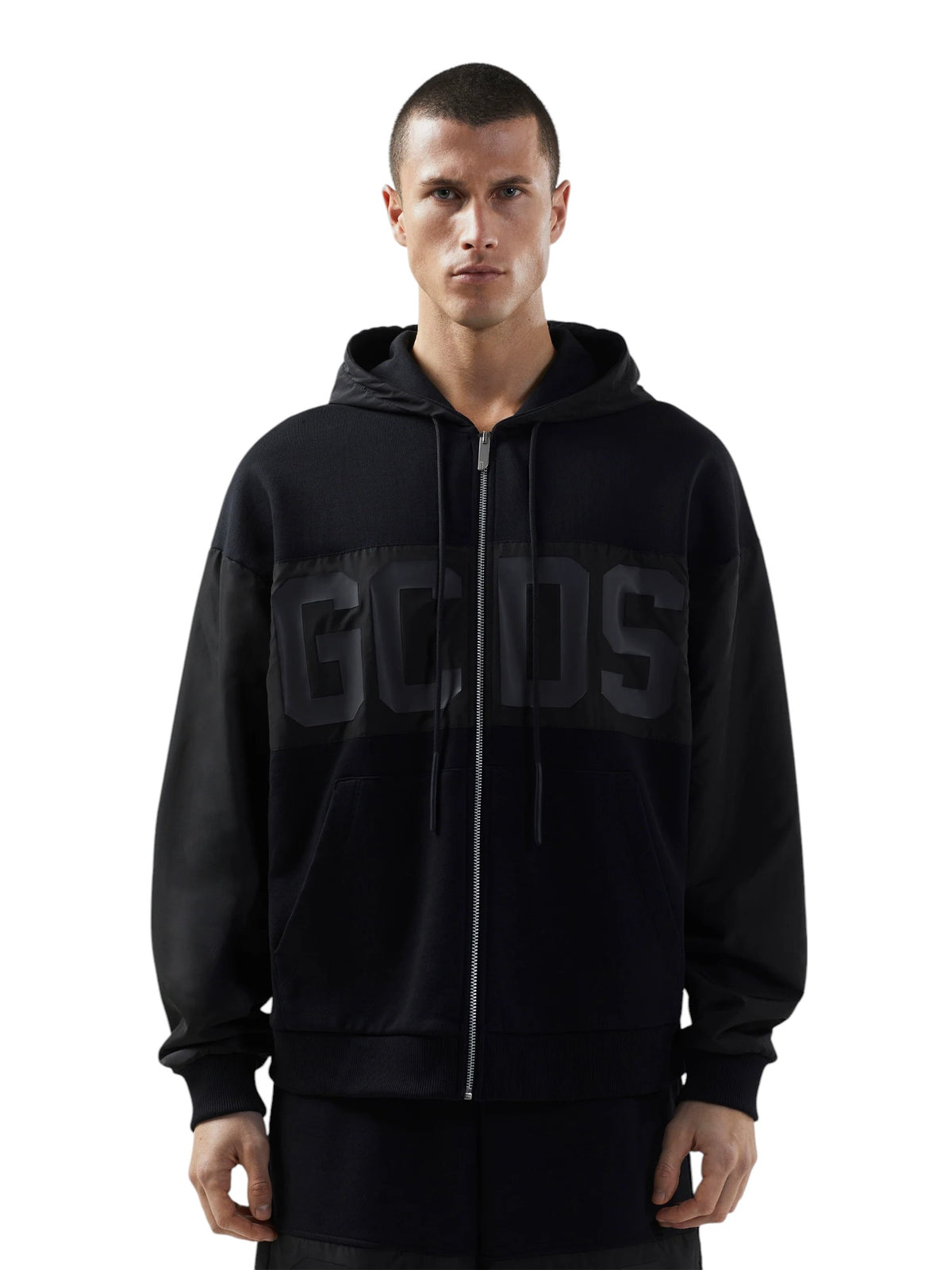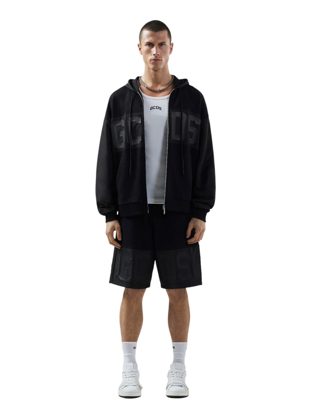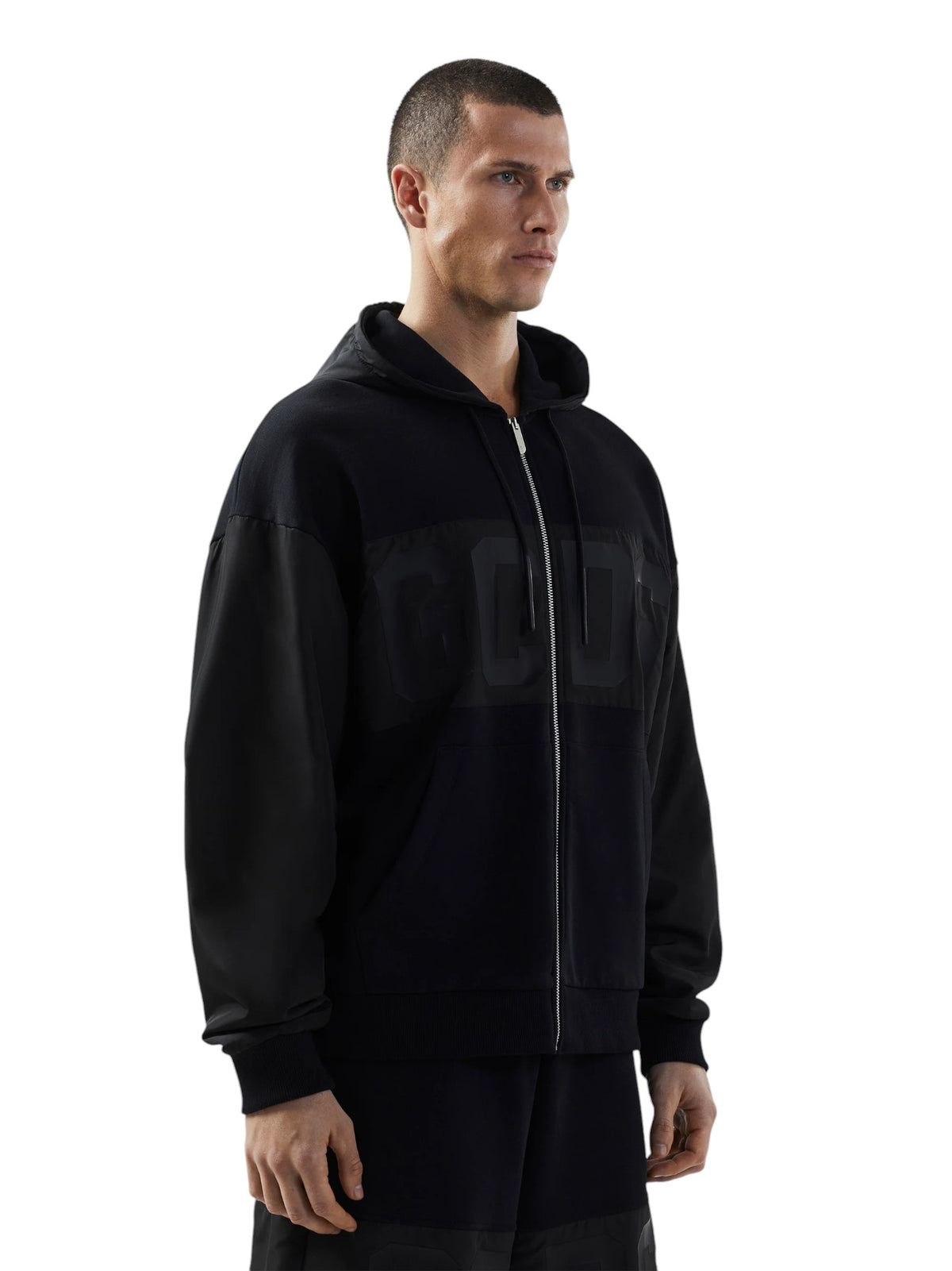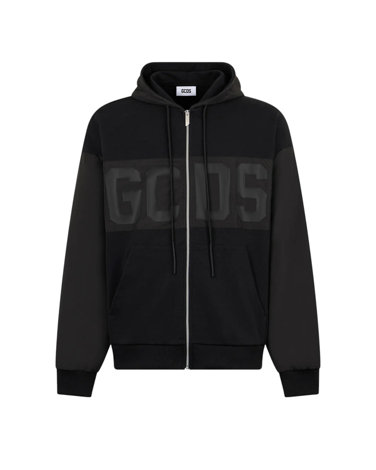 Felpa con zip integrale in nylon, con logo stampato in rilievo lucido tono su tono